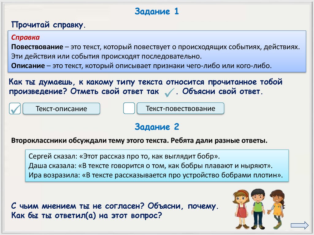 Как ты думаешь, к какому типу текста относится прочитанное тобой