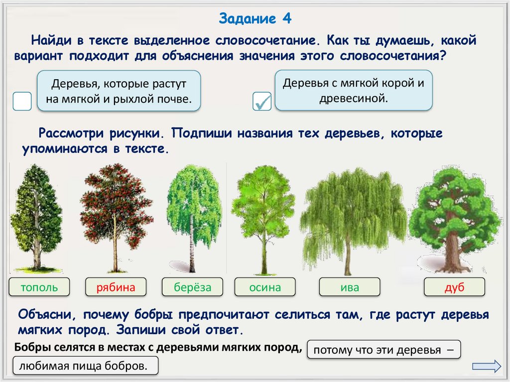 Объясни, почему бобры предпочитают селиться там, где растут деревья