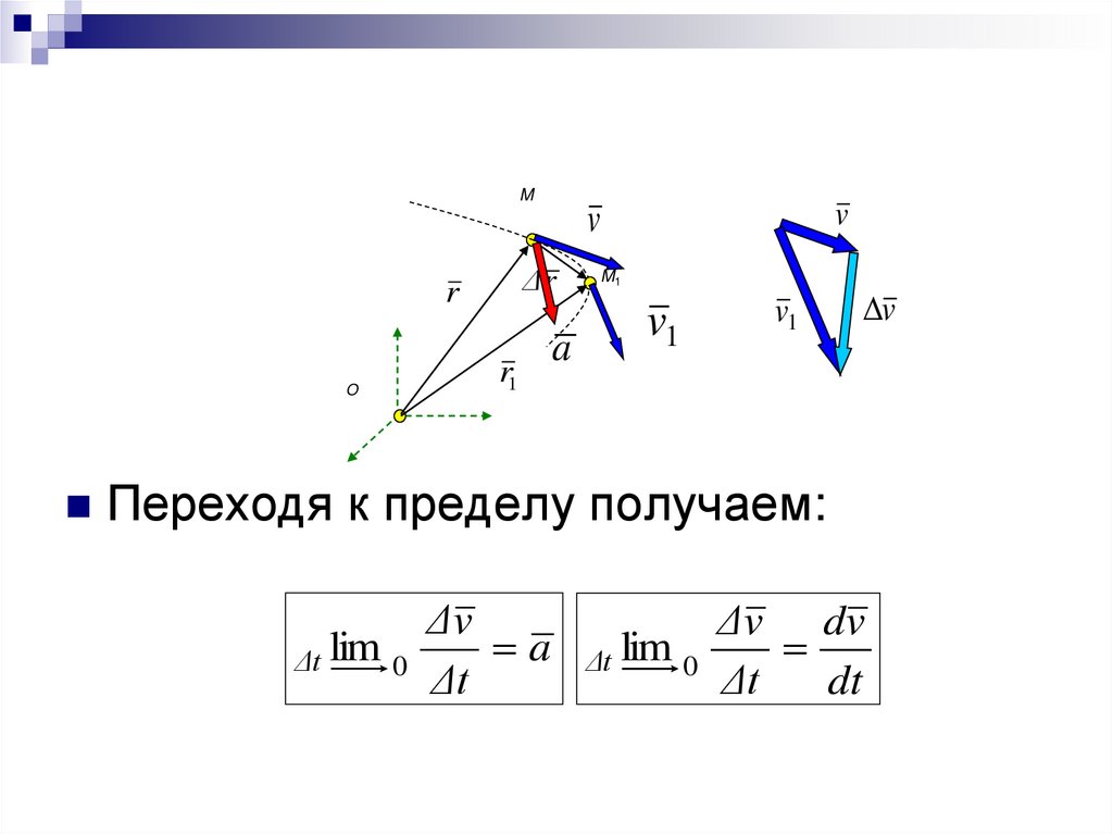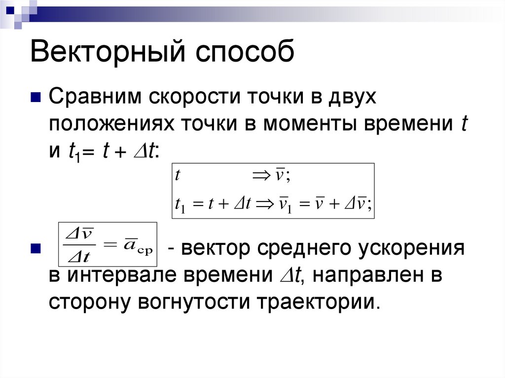 Сравним скорости точки в двухположениях точки в моменты времени t