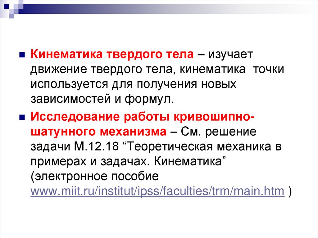 Кинематика твердого тела – изучаетдвижение твердого тела, кинематика точки