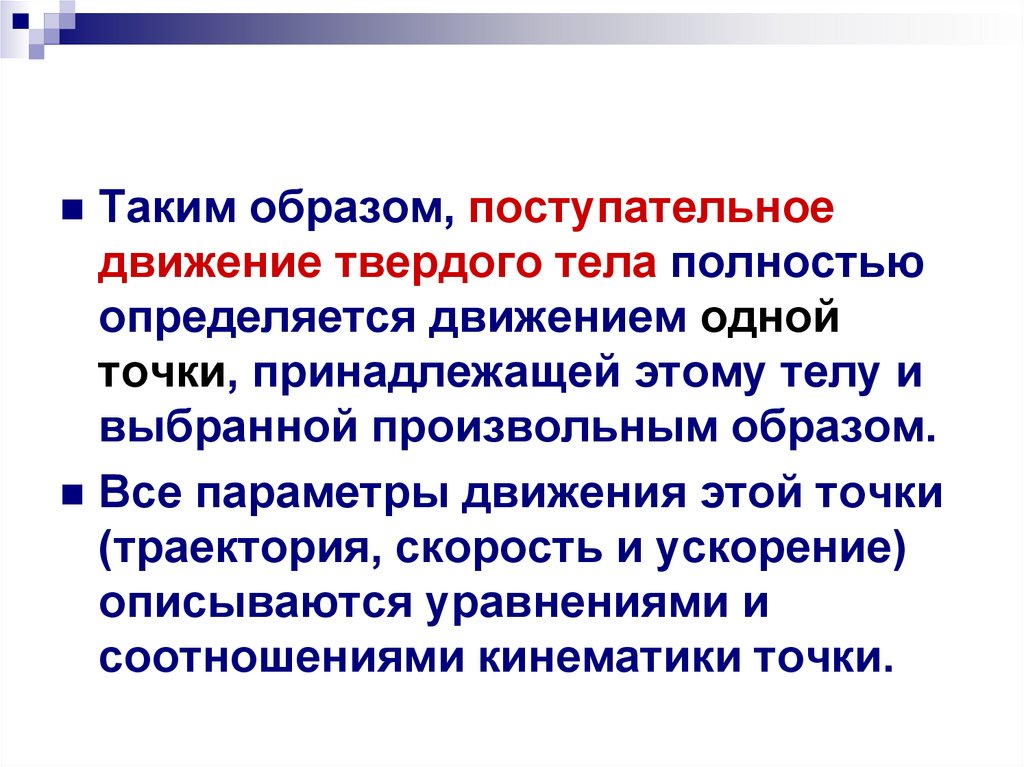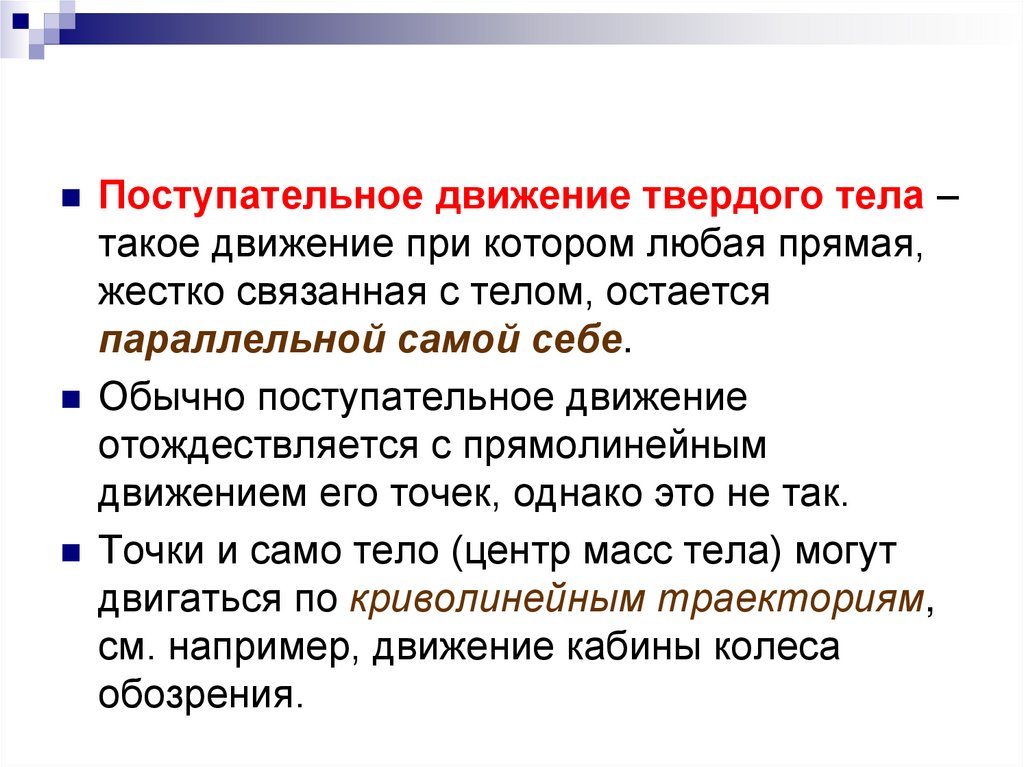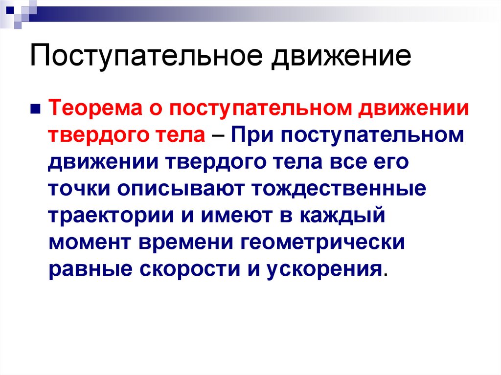 Поступательное движение твердого тела –такое движение при котором любая прямая,