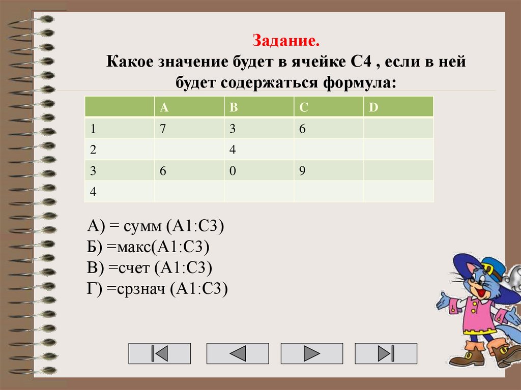 Задание.Какое значение будет в ячейке С4 , если в ней