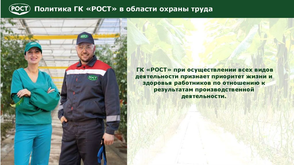 Политика ГК «РОСТ» в области охраны трудаГК «РОСТ» при осуществлении всех видов