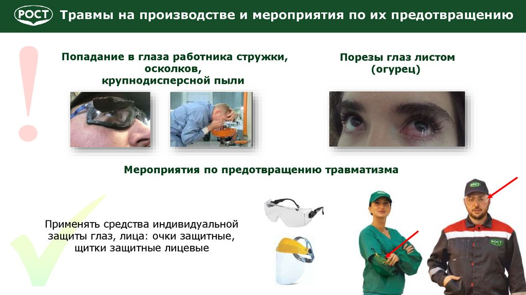 Травмы на производстве и мероприятия по их предотвращениюПопадание в глаза работника стружки,