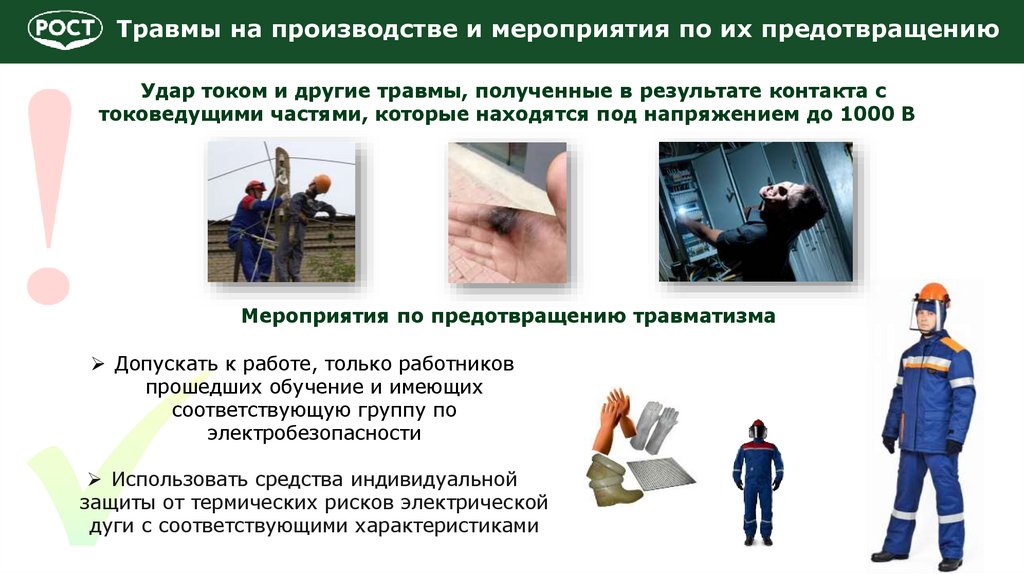 Травмы на производстве и мероприятия по их предотвращениюУдар током и другие травмы, полученные в результате контакта с