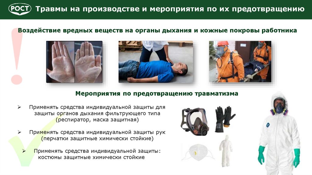 Травмы на производстве и мероприятия по их предотвращениюВоздействие вредных веществ на органы дыхания и кожные покровы работника