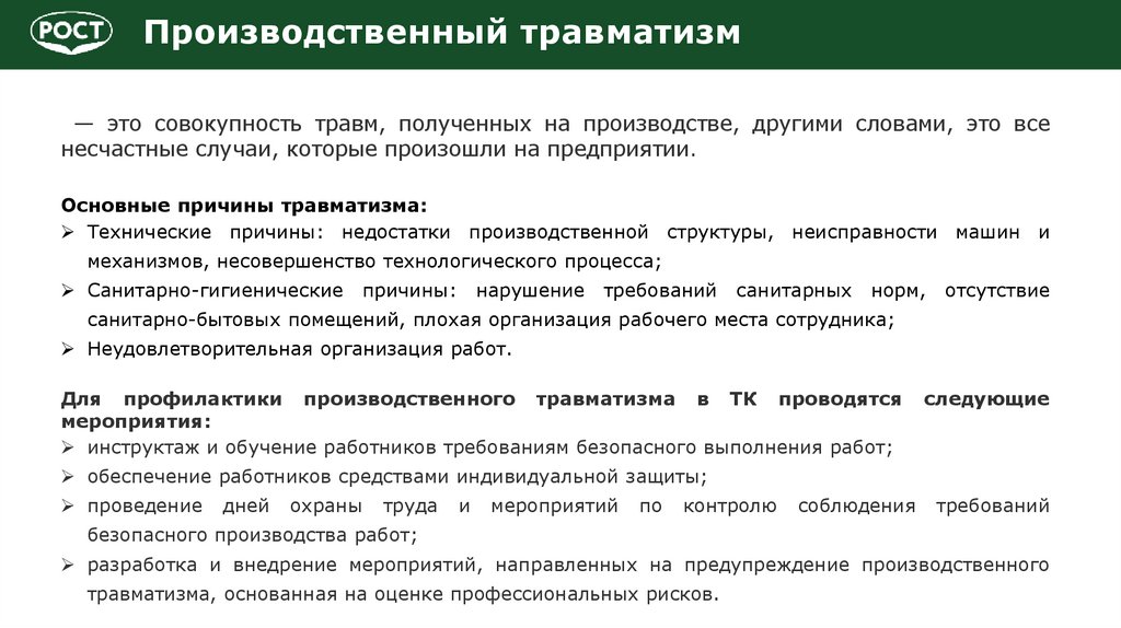Производственный травматизм— это совокупность травм, полученных на производстве, другими словами, это все