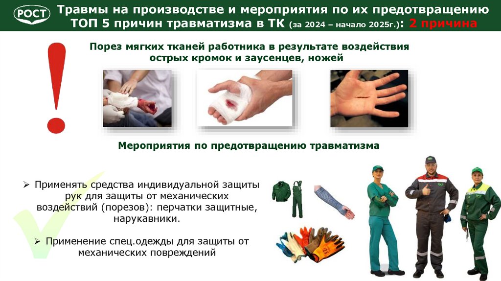 Травмы на производстве и мероприятия по их предотвращениюТОП 5 причин травматизма в ТК (за 2024 – начало 2025г.): 2 причина