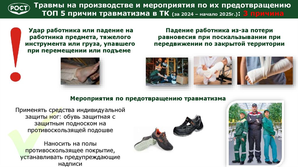 Травмы на производстве и мероприятия по их предотвращениюТОП 5 причин травматизма в ТК (за 2024 – начало 2025г.): 3 причина