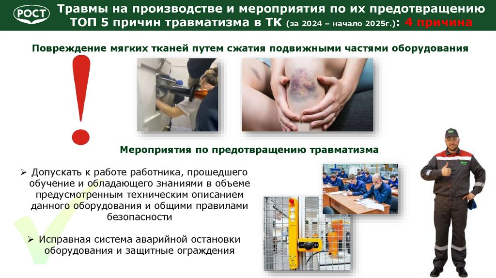 Травмы на производстве и мероприятия по их предотвращениюТОП 5 причин травматизма в ТК (за 2024 – начало 2025г.): 1 причина