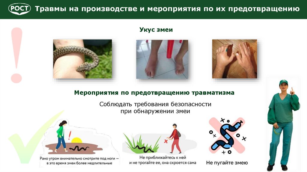 Травмы на производстве и мероприятия по их предотвращениюУкус змеи