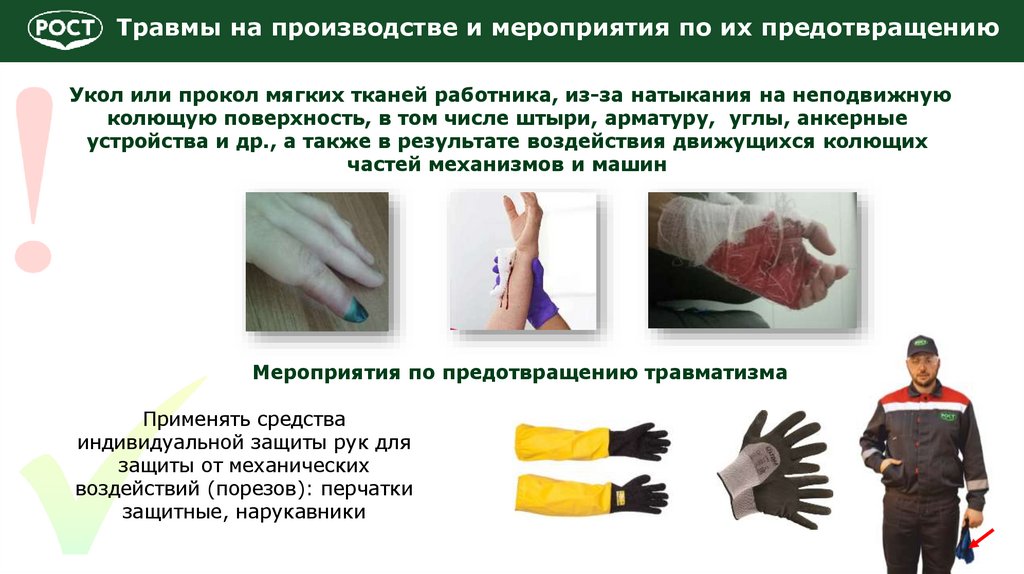 Травмы на производстве и мероприятия по их предотвращениюУкол или прокол мягких тканей работника, из-за натыкания на неподвижную