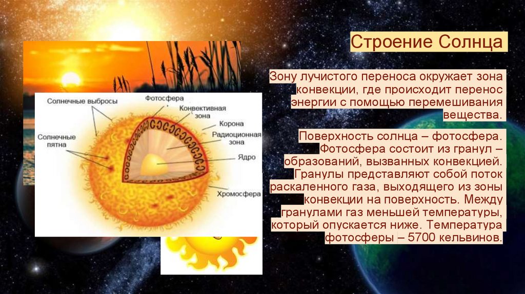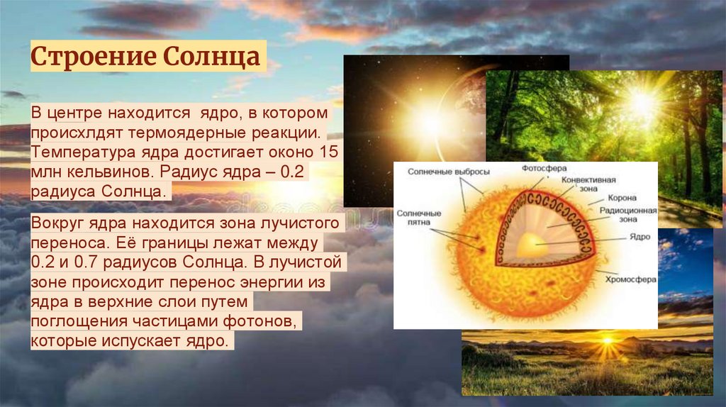 Строение СолнцаВ центре находится ядро, в котором