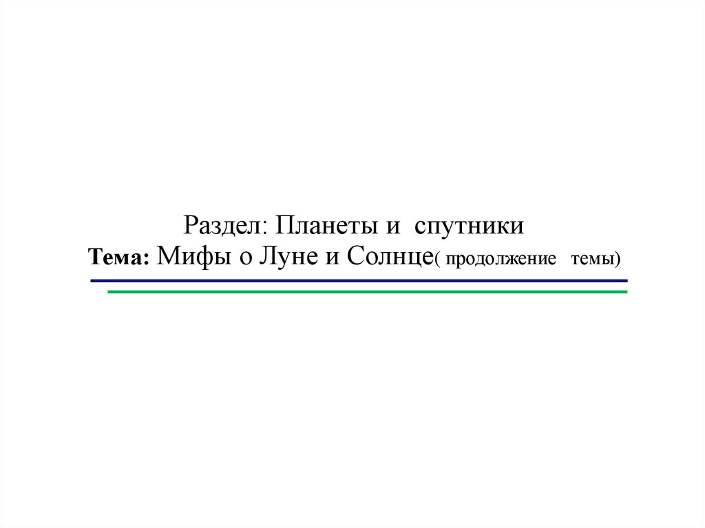 Раздел: Планеты и спутникиТема: Мифы о Луне и Солнце( продолжение темы)