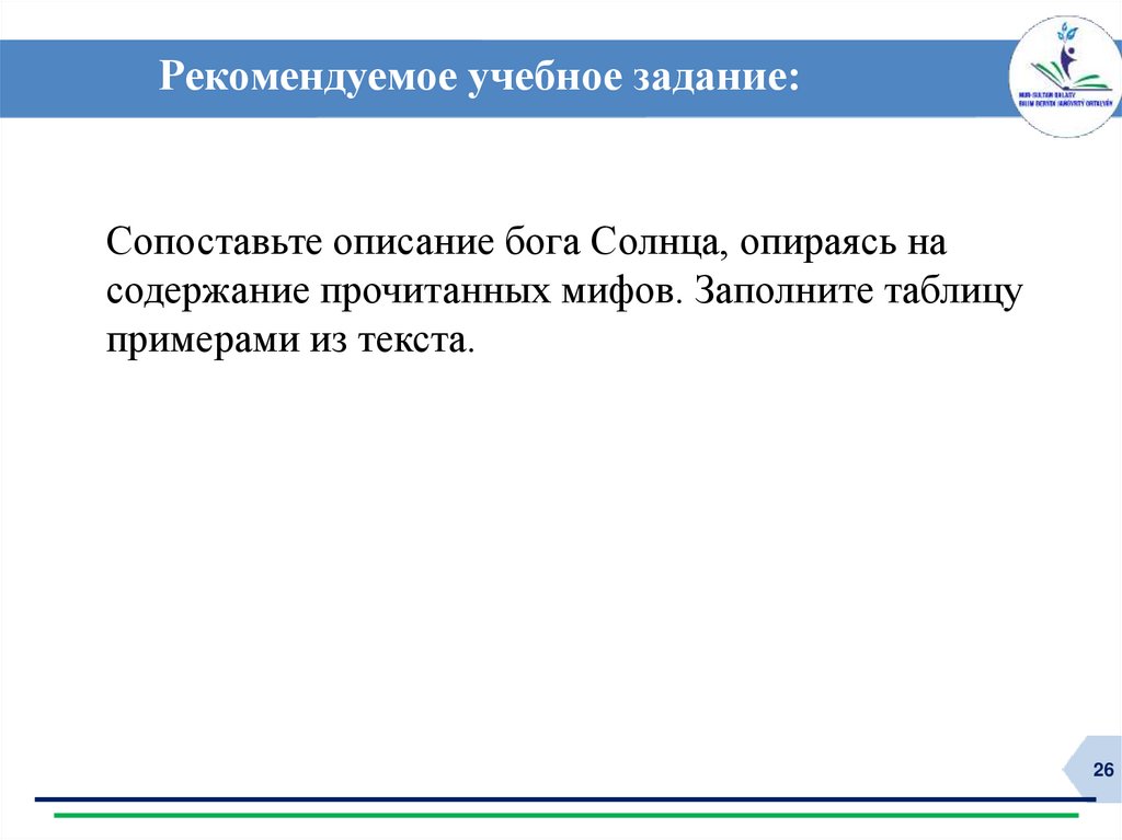 Рекомендуемое учебное задание:Сопоставьте описание бога Солнца, опираясь на