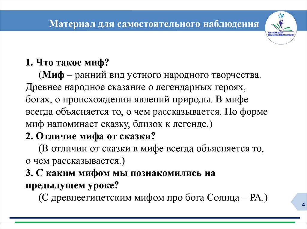 Материал для самостоятельного наблюдения1. Что такое миф?
