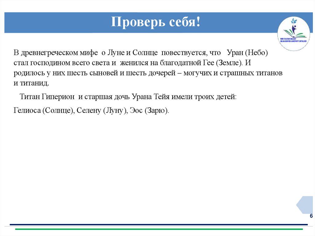 Проверь себя!В древнегреческом мифе о Луне и Солнце повествуется, что Уран (Небо)