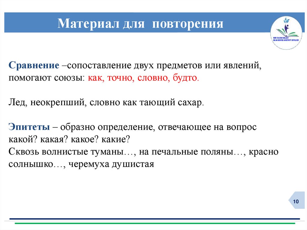 Материал для повторенияСравнение –сопоставление двух предметов или явлений,