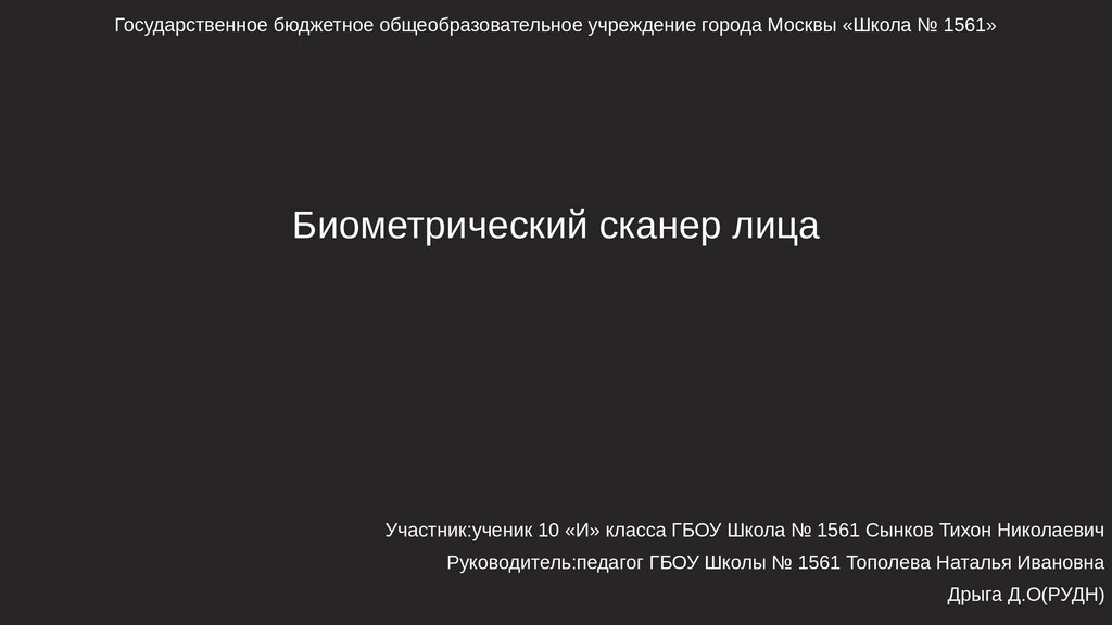 Государственное бюджетное общеобразовательное учреждение города Москвы «Школа № 1561»Биометрический сканер лица