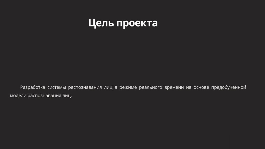 Цель проектаРазработка системы распознавания лиц в режиме реального времени на основе предобученной