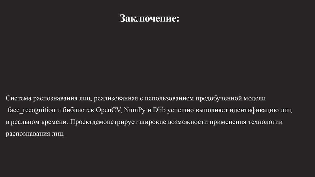 Заключение:Система распознавания лиц, реализованная с использованием предобученной модели