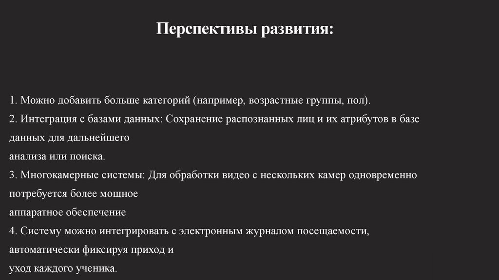 Перспективы развития:1. Можно добавить больше категорий (например, возрастные группы, пол).