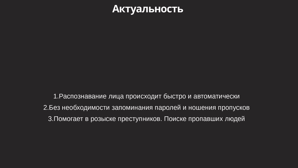 Актуальность1.Распознавание лица происходит быстро и автоматически