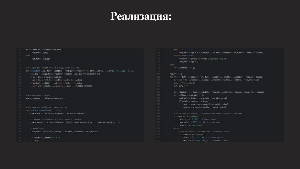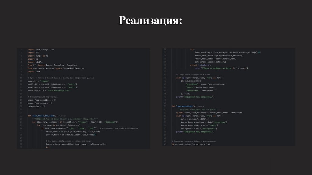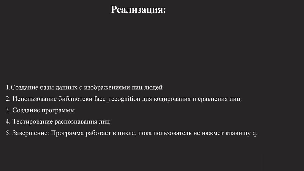 Реализация:1.Создание базы данных с изображениями лиц людей
