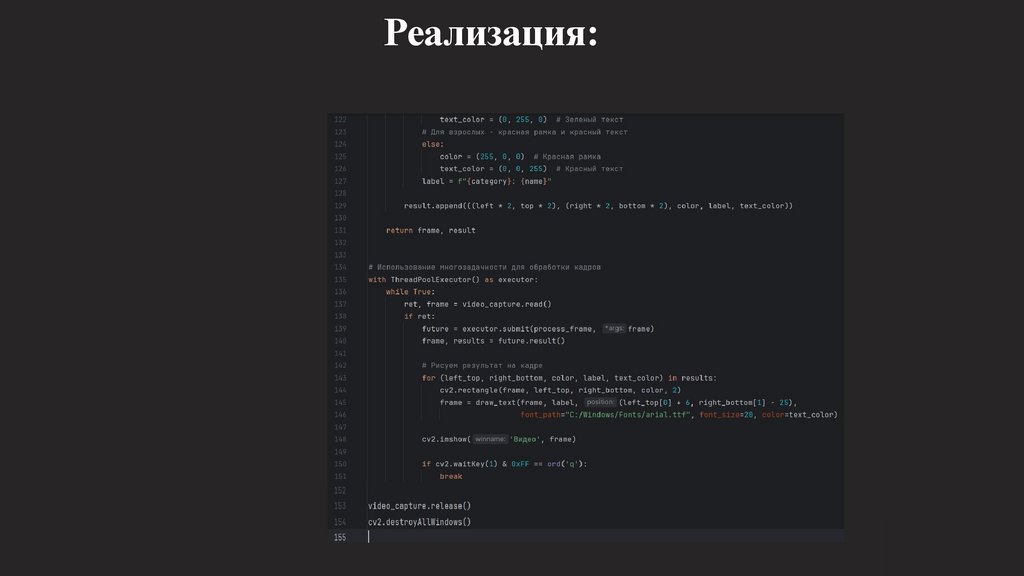 2. Обработка кадров (многопоточно).Результатом process_frame является сам кадр и список