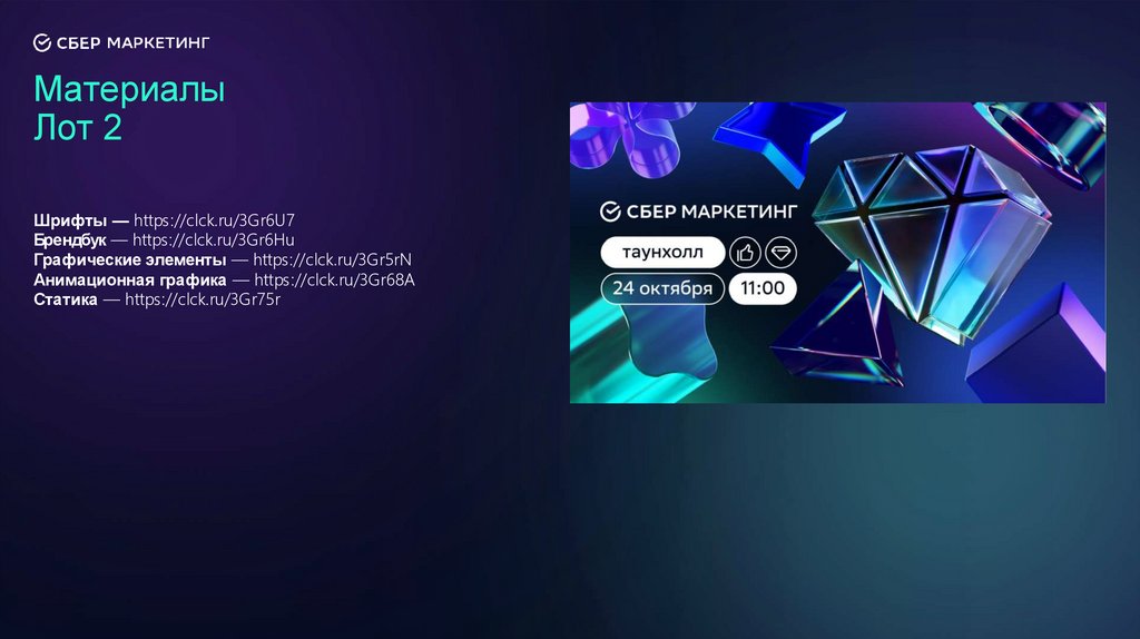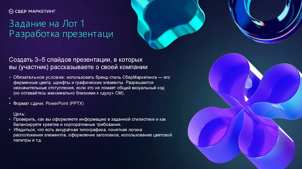 • Обязател ь ное услов ие: использовать бренд-стиль СберМаркетинга — его