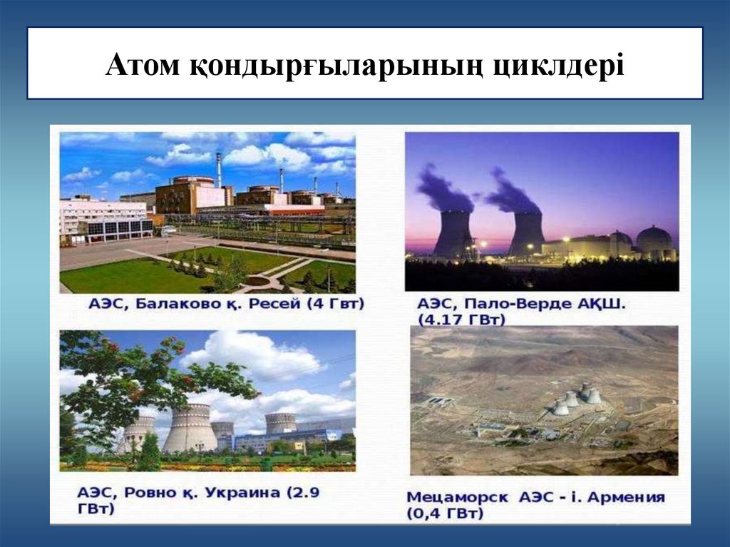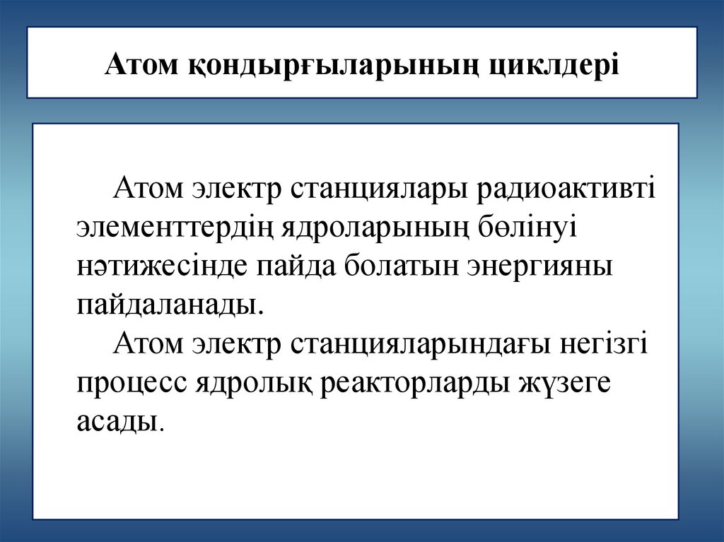 Атом қондырғыларының циклдеріАтом электр станциялары радиоактивті