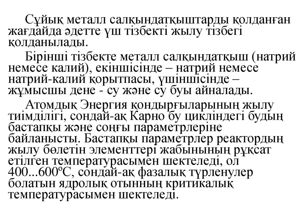 Сұйық металл салқындатқыштарды қолданғанжағдайда әдетте үш тізбекті жылу тізбегі