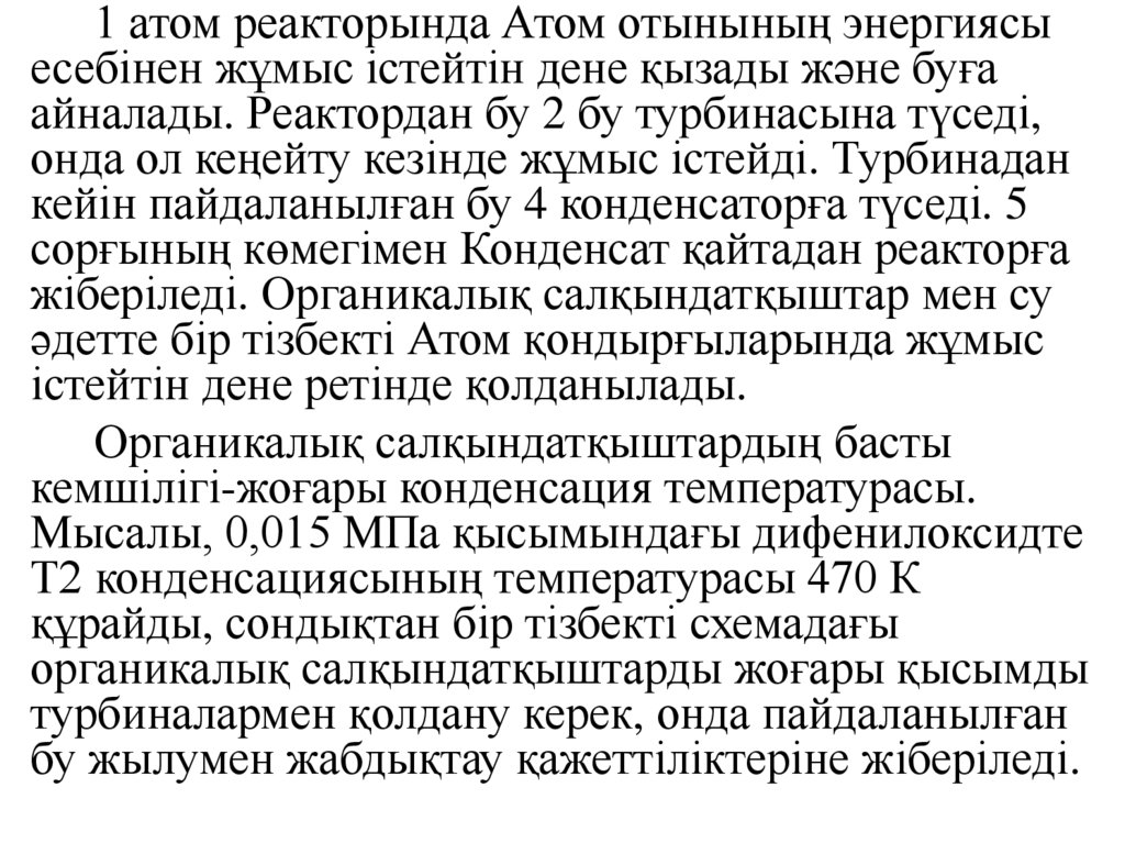 1 атом реакторында Атом отынының энергиясыесебінен жұмыс істейтін дене қызады және буға