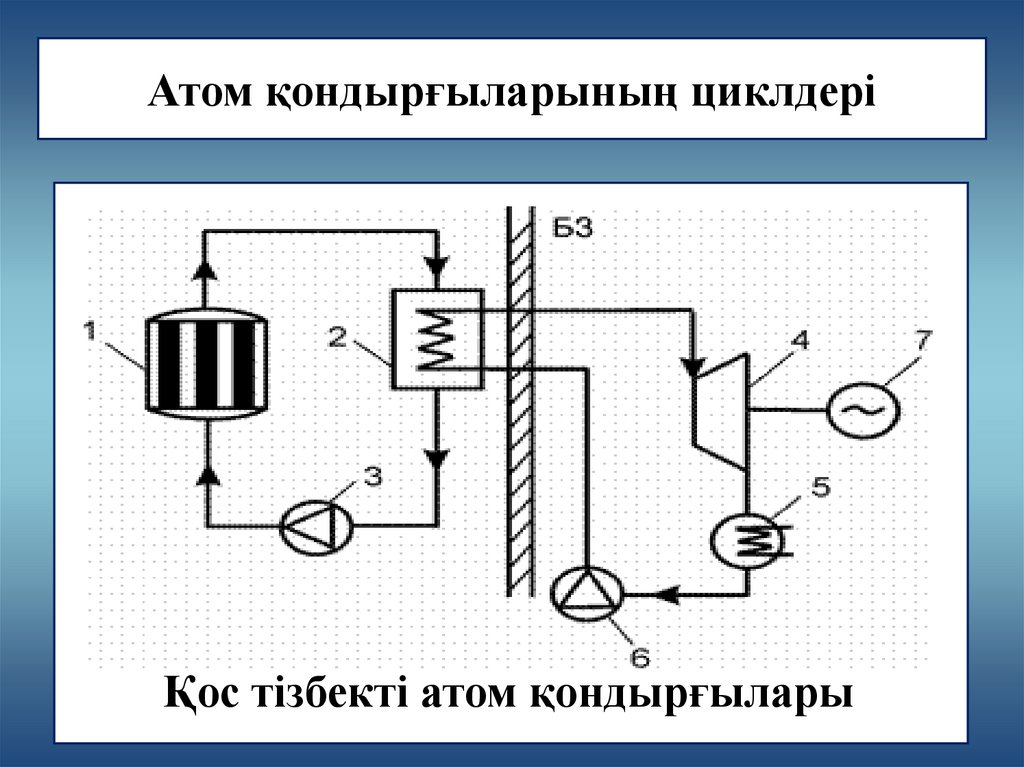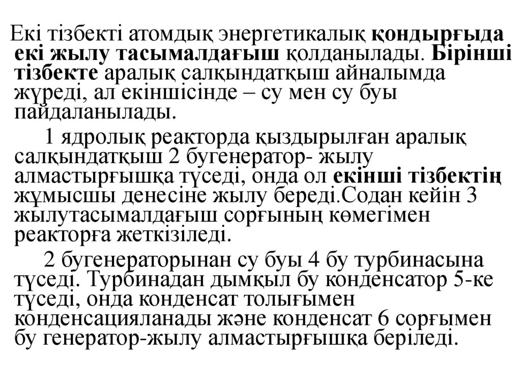 Екі тізбекті атомдық энергетикалық қондырғыдаекі жылу тасымалдағыш қолданылады. Бірінші
