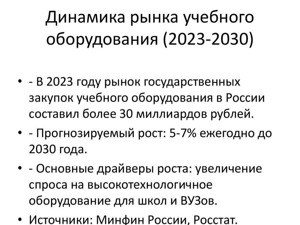 Динамика рынка учебногооборудования (2023-2030)