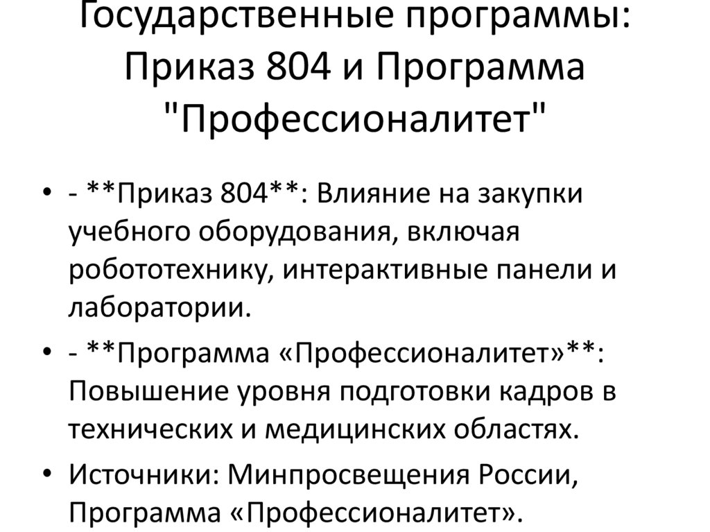Государственные программы:Приказ 804 и Программа