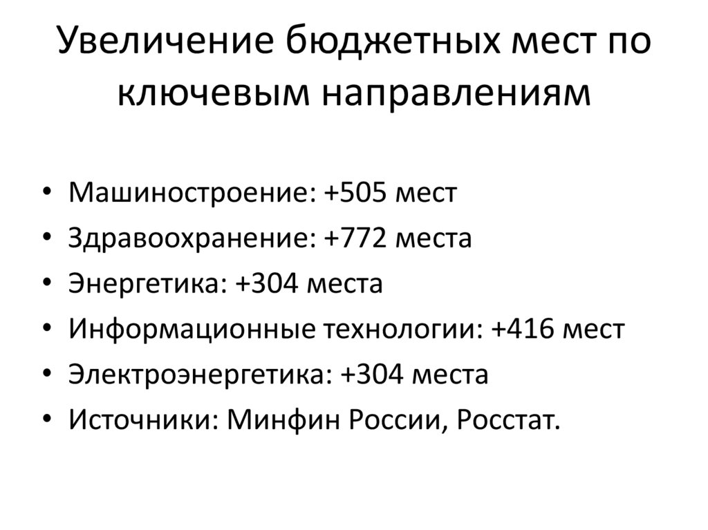 Увеличение бюджетных мест поключевым направлениям