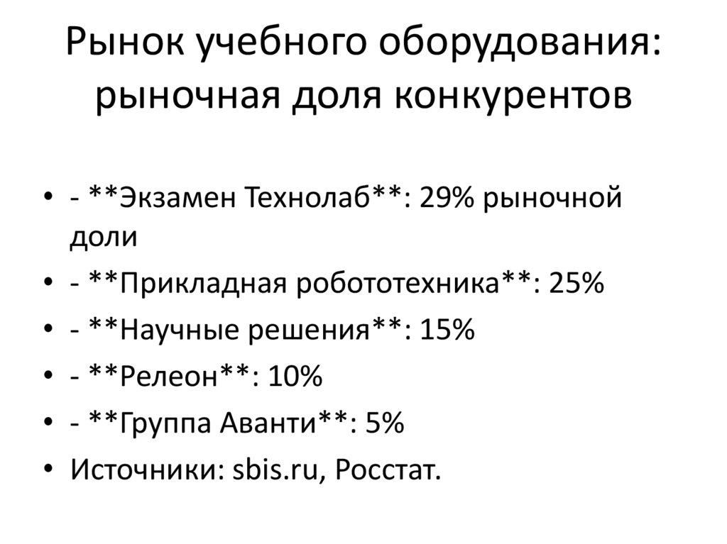 Рынок учебного оборудования:рыночная доля конкурентов