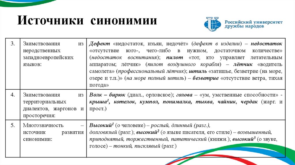 Источники синонимии.