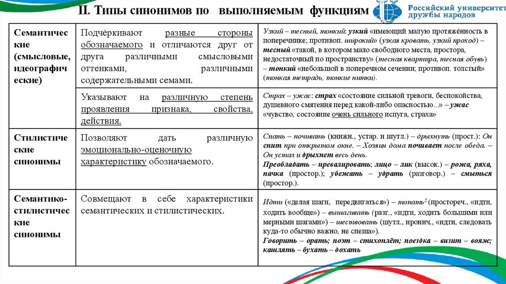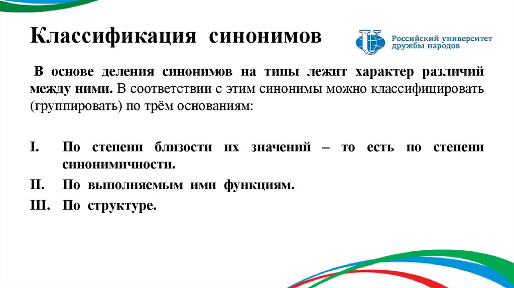 2. Классификация синонимов.