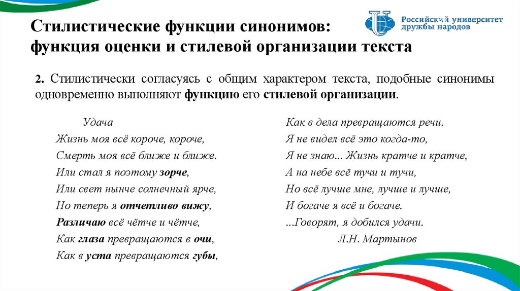 Стилистические функции синонимов.
