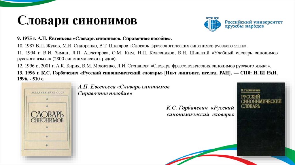 13. 1996 г. К.С. Горбачевич «Русский синонимический словарь» [Ин-т лингвист. исслед. РАН]. — СПб: ИЛИ РАН,