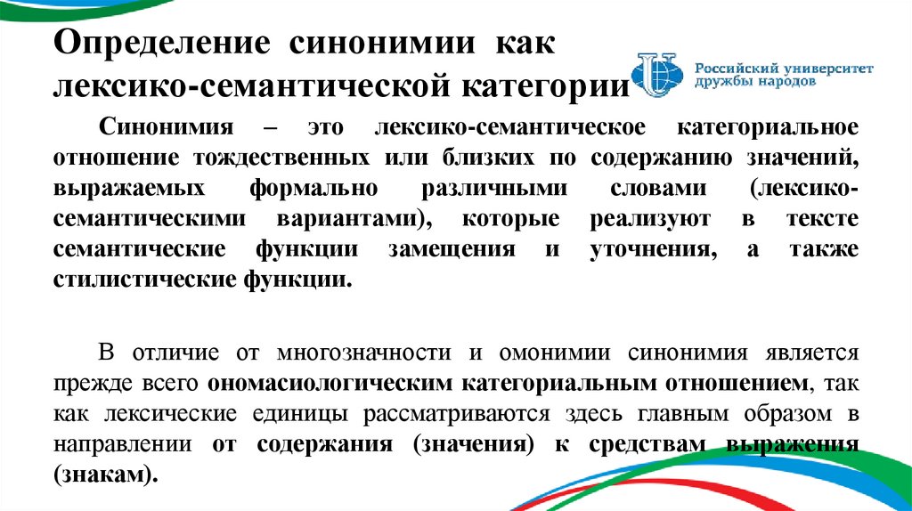 3. Синонимия как лексико-семантическая категория, её природа и определение
