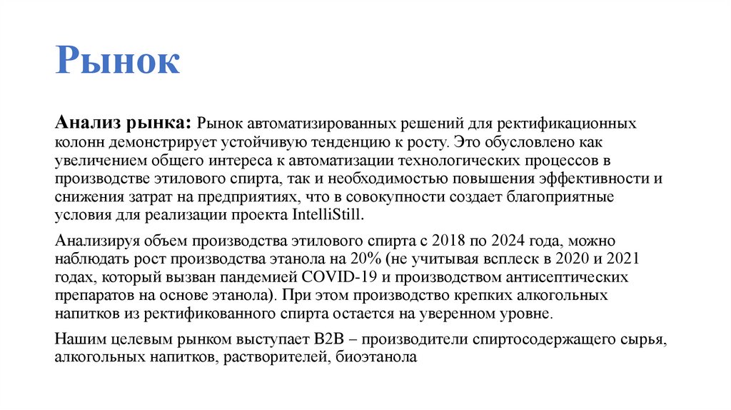Нашим целевым рынком выступает В2В – производители спиртосодержащего сырья,