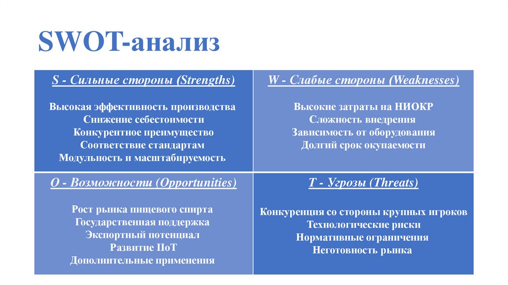 S - Сильные стороны (Strengths)W - Слабые стороны (Weaknesses)