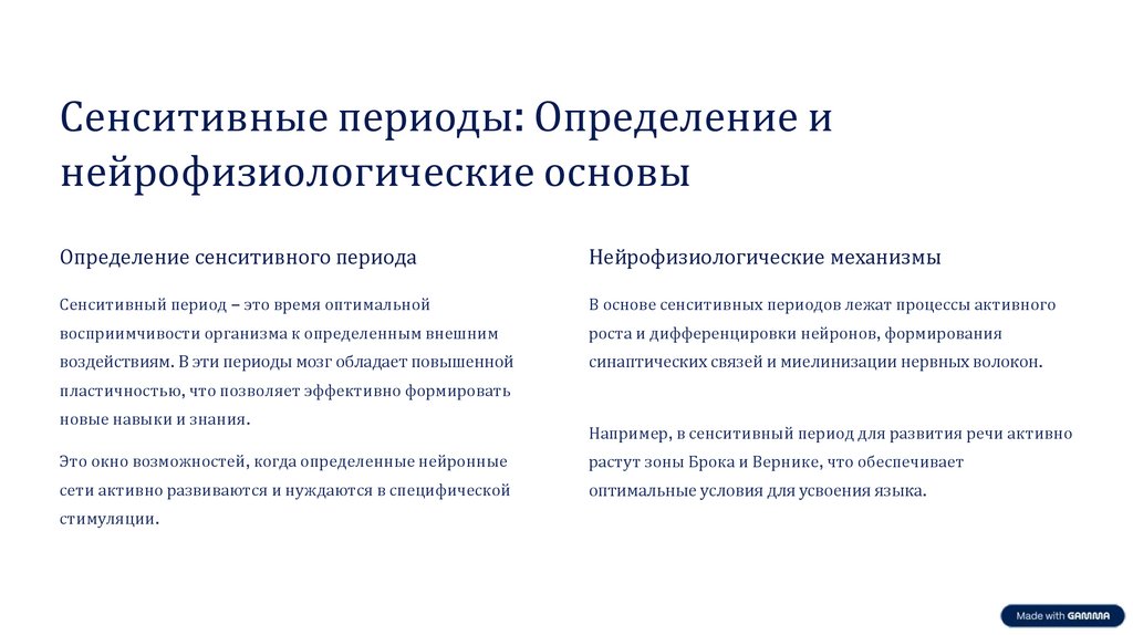 Сенситивные периоды и обучение: Нейропедагогическийаспект