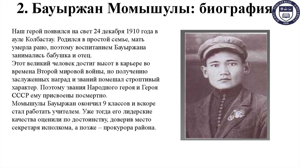 Момышулы Бауыржан окончил 9 классов и вскоре
