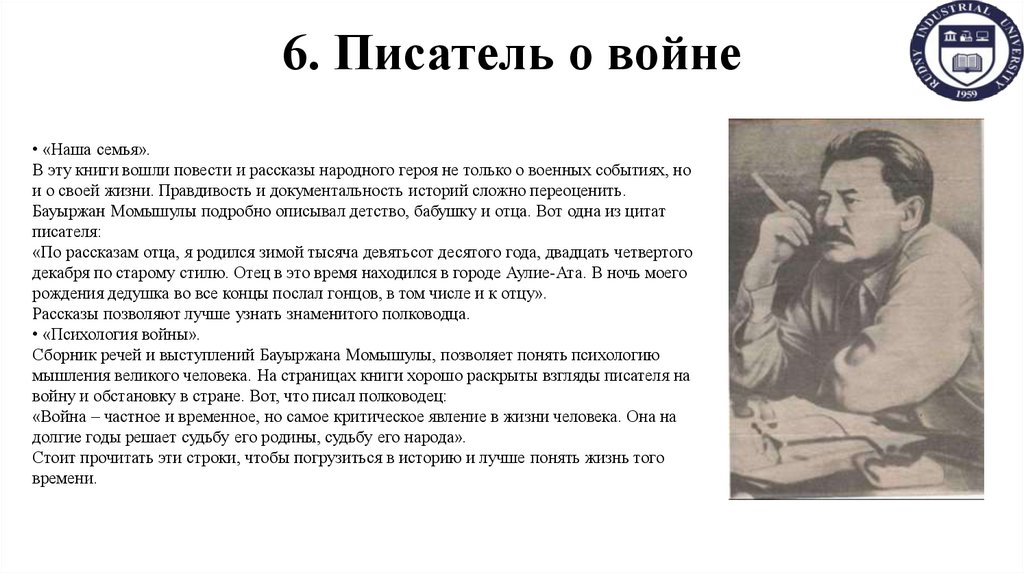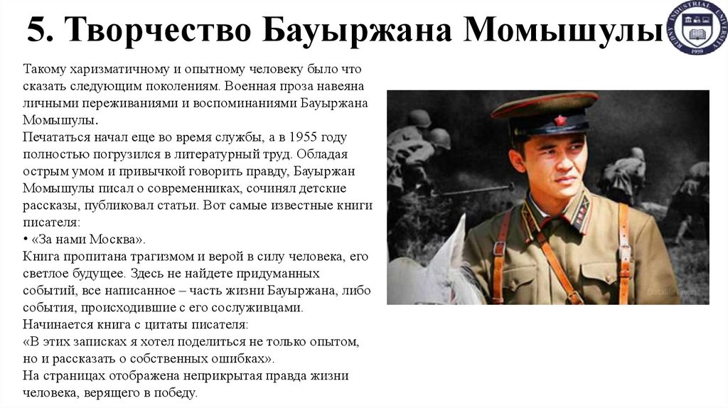 1. Солдат и писатель2. Бауыржан Момышулы: биография