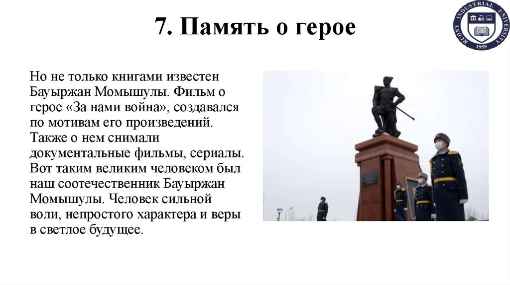 Но не только книгами известенБауыржан Момышулы. Фильм о