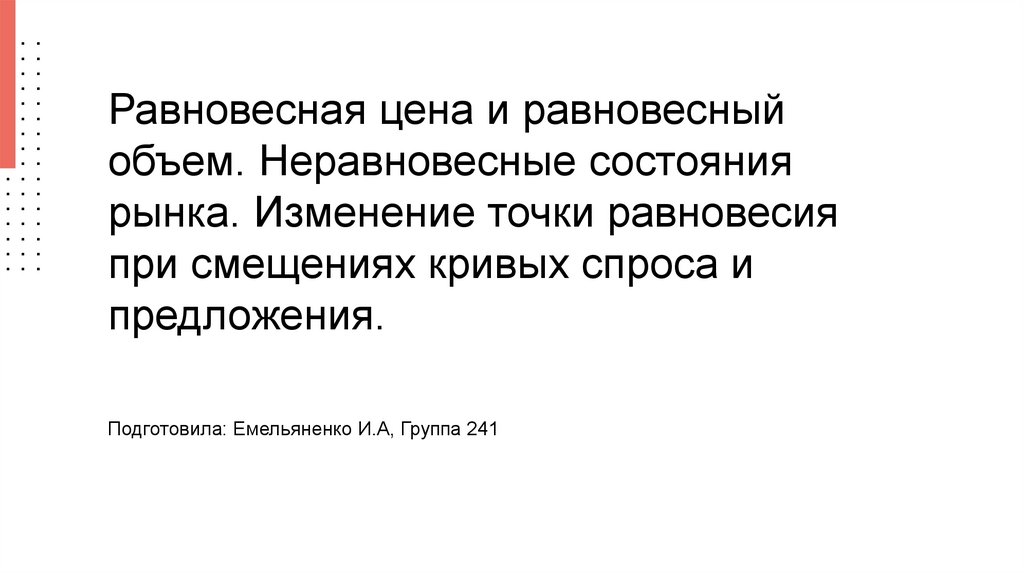 РА В Н О В Е С Н Ы Е Ц Е Н А И О БЪ Ё МРавновесная цена – это такое
